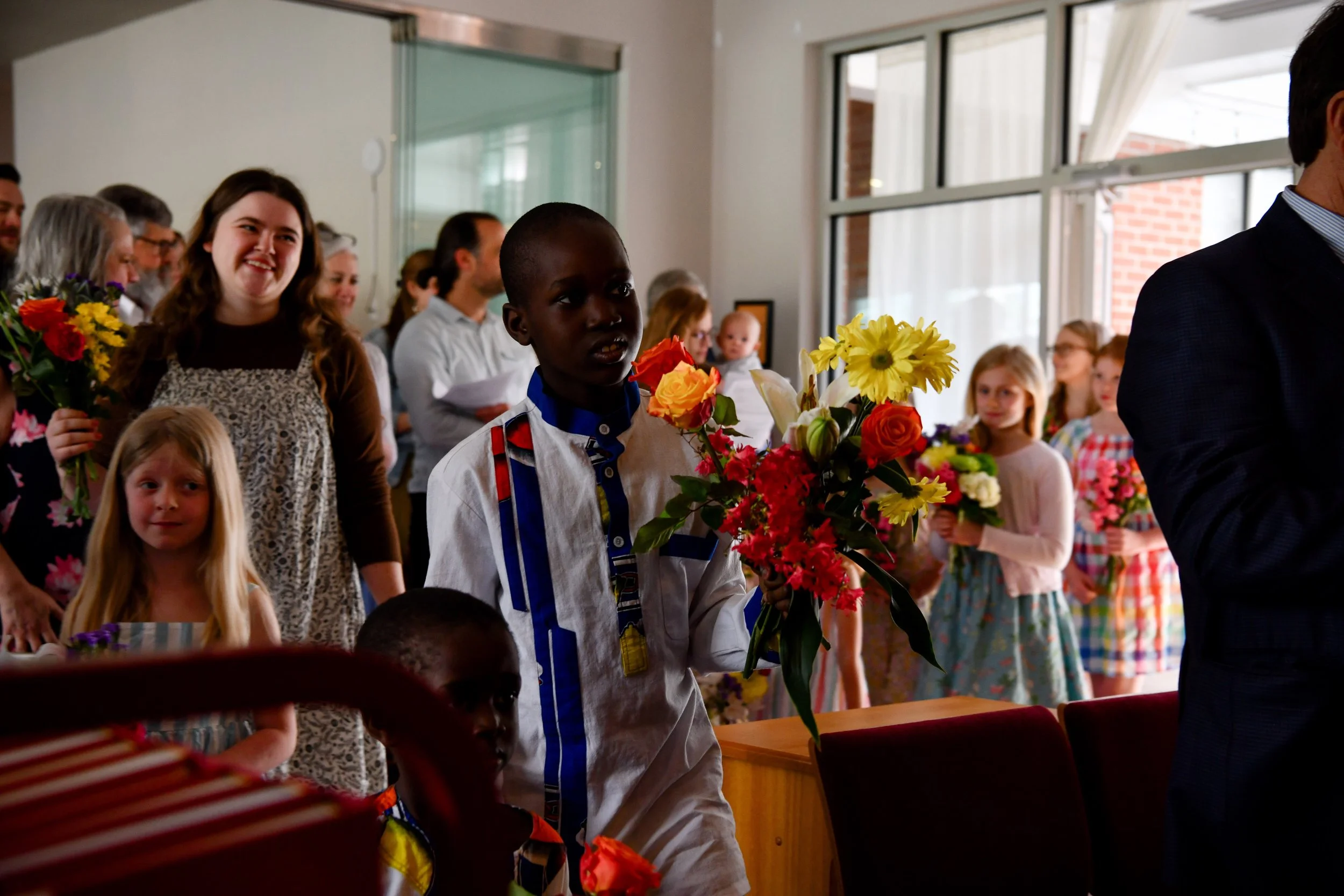 Catechists will return children to the service to join their families for Holy Communion (sometimes with each age group arriving returning at slightly different times).